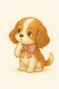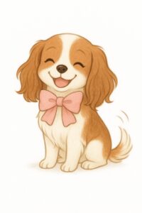 セリフは無しで、にっこり微笑む上品なキャバリア犬の